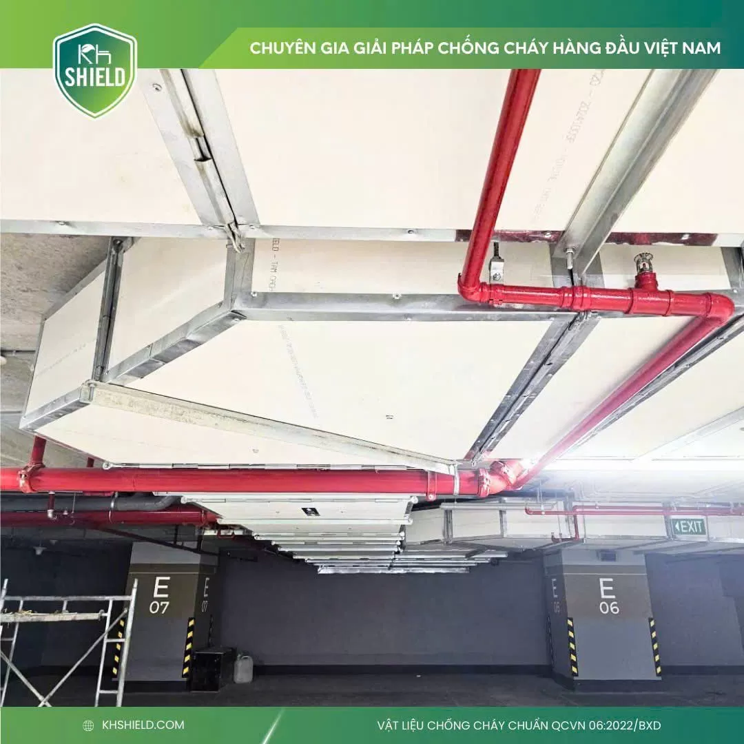 💨 𝐀𝐧 𝐭𝐨𝐚̀𝐧 𝐭𝐫𝐨𝐧𝐠 𝐤𝐡𝐨́𝐢 𝐥𝐮̛̉𝐚: Tấm KH Shield là vật liệu không cháy theo ISO 1182:2010, độc tính thấp nhất ĐT1 theo ISO 13344:2015, góp phần nâng cao an toàn cho lối thoát hiểm và toàn bộ công trình.