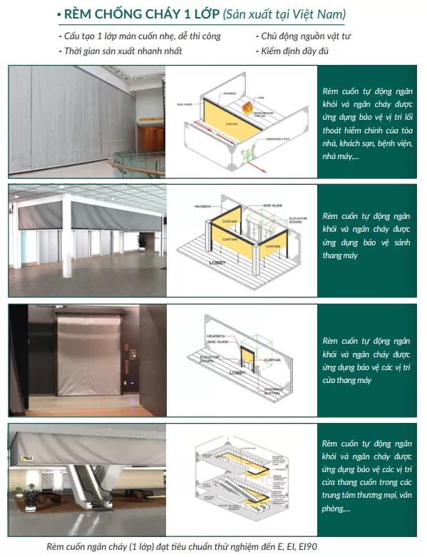 Rèm chống cháy 1 lớp là một giải pháp an toàn hiệu quả, tích hợp công nghệ hiện đại để bảo vệ con người và tài sản trong trường hợp xảy ra hỏa hoạn.