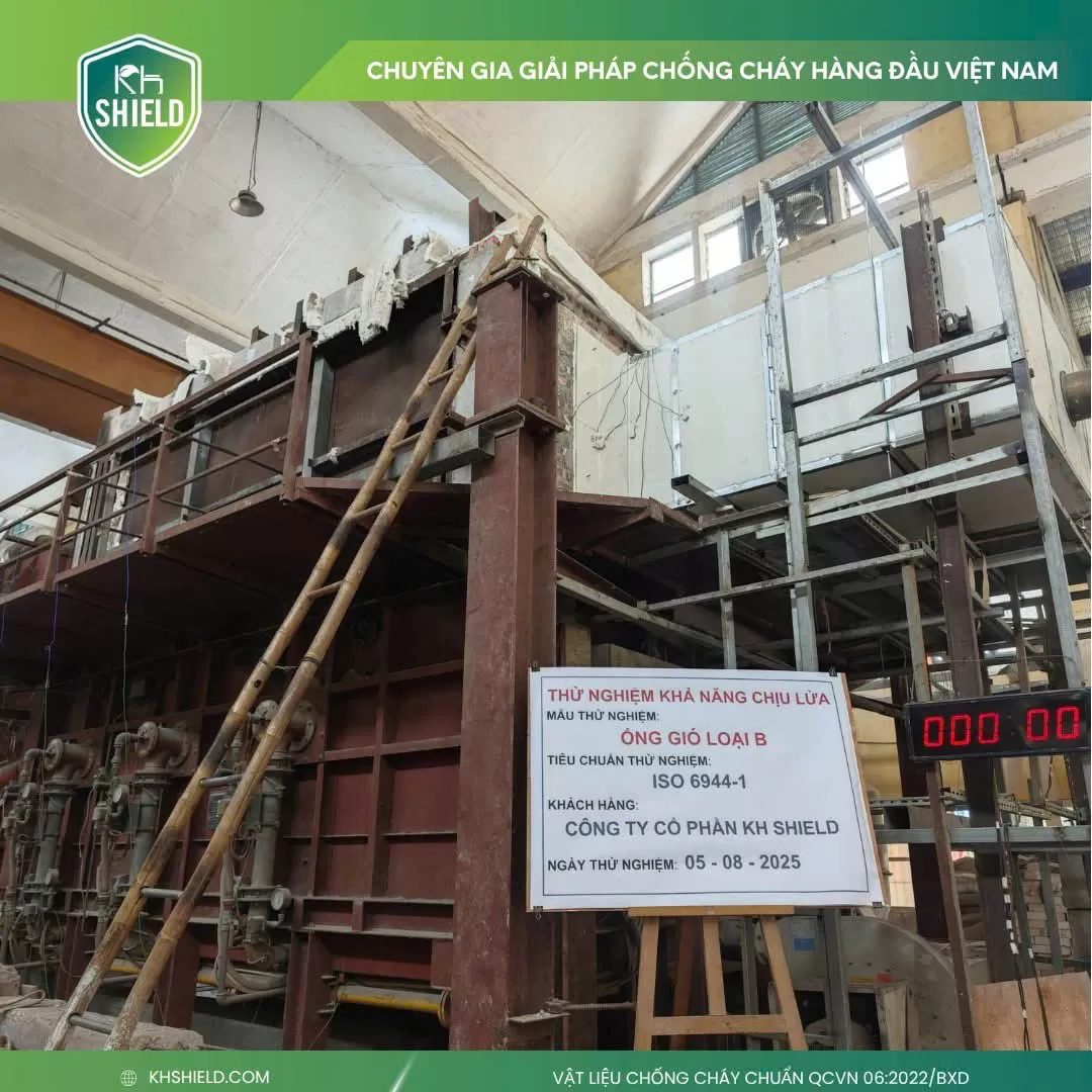 𝐊𝐇 𝐒𝐡𝐢𝐞𝐥𝐝 vừa tiến hành thử nghiệm đốt thành công tấm 𝐌𝐏𝐫𝐨 bọc cho ống gió tiêu chuẩn 𝐄𝐈𝟔𝟎. Tấm 𝐌𝐏𝐫𝐨 là dòng vật liệu cách nhiệt thế hệ mới được phát triển với hiệu suất tối ưu. Đây là bước tiến quan trọng trong quá trình kiểm định chất lượng, cho thấy khả năng cách nhiệt và chống cháy vượt trội của sản phẩm.